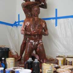 Wetandmessyfun KT got rubbed down on an inflatable covered with molasses by Stacey
