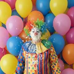 Messymissmia was pied in the face with a real-crust pie by Big Bird the Clown