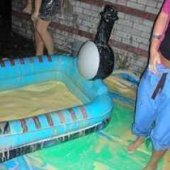Slaps was plunged into a dunk tank of pudding after the target was hit by michiganpie1